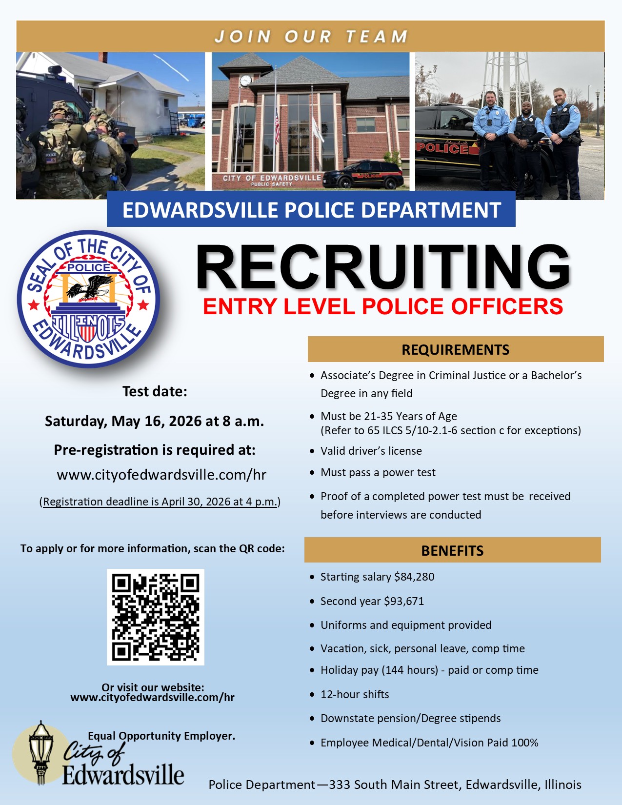 The City of Edwardsville is accepting applications for a public safety telecommunicator position within our 911 Center. Anyone interested in applying should go to the City website for more information (https://www.cityofedwardsville.com/187/Employment-Opportunities).