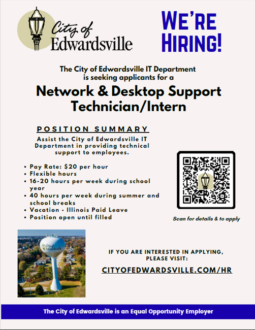 Network & Desktop Support Technician/InternBy John Suarez / November 25, 2025 Closing on: Dec 27, 2025Job Field: Information Technology Job Shift: Flexible Job Location: Edwardsville IL