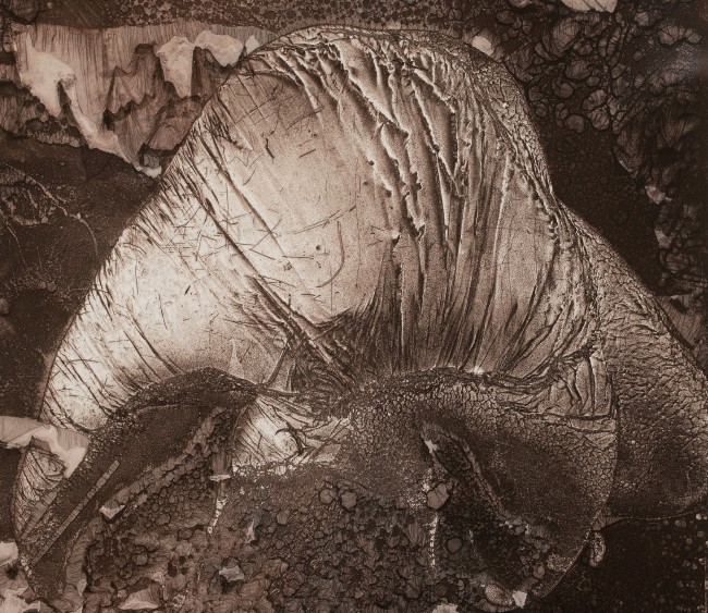 Kristoffer Johnson’s work confronts impermanence and the fragility of the human body, drawing on the Buddhist concept of Maranasati, “mindfulness of death,” and the Western tradition of Memento Mori. Using the alternative photographic process of mordançage to erode and distort his images, he mimics bodily decay, underscoring the inevitability of mortality.