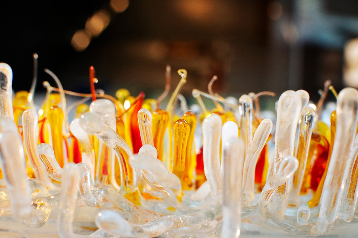 Glass sculptural vessels that explore depth and negative space reminiscent of the symmetry found in botanicals and sea forms.